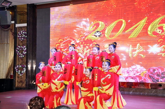 2015年度总结表彰大会圆满结束后,2016年迎新春晚会在喜庆开场舞《张灯结彩闹新春》中开始,欢快的舞步在道具红灯笼的掩映下散发出浓浓的新年气息,将浓浓的祝福洒满大厅的每一个角落。本次联欢会节目精彩纷呈,所有的节目都是各个部门利用工作之余自编自导自演,欢快喜庆、激情澎湃的歌曲;唯美、活泼、热情如火的舞蹈;诙谐幽默的喜剧(小品);振奋人心的团队合唱等等。这些都充分展示了尊龙凯时员工的多才多艺,以及快乐工作、健康生活的文化理念。《张灯结彩闹新春》